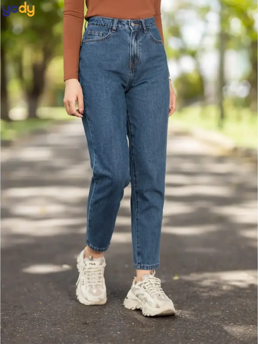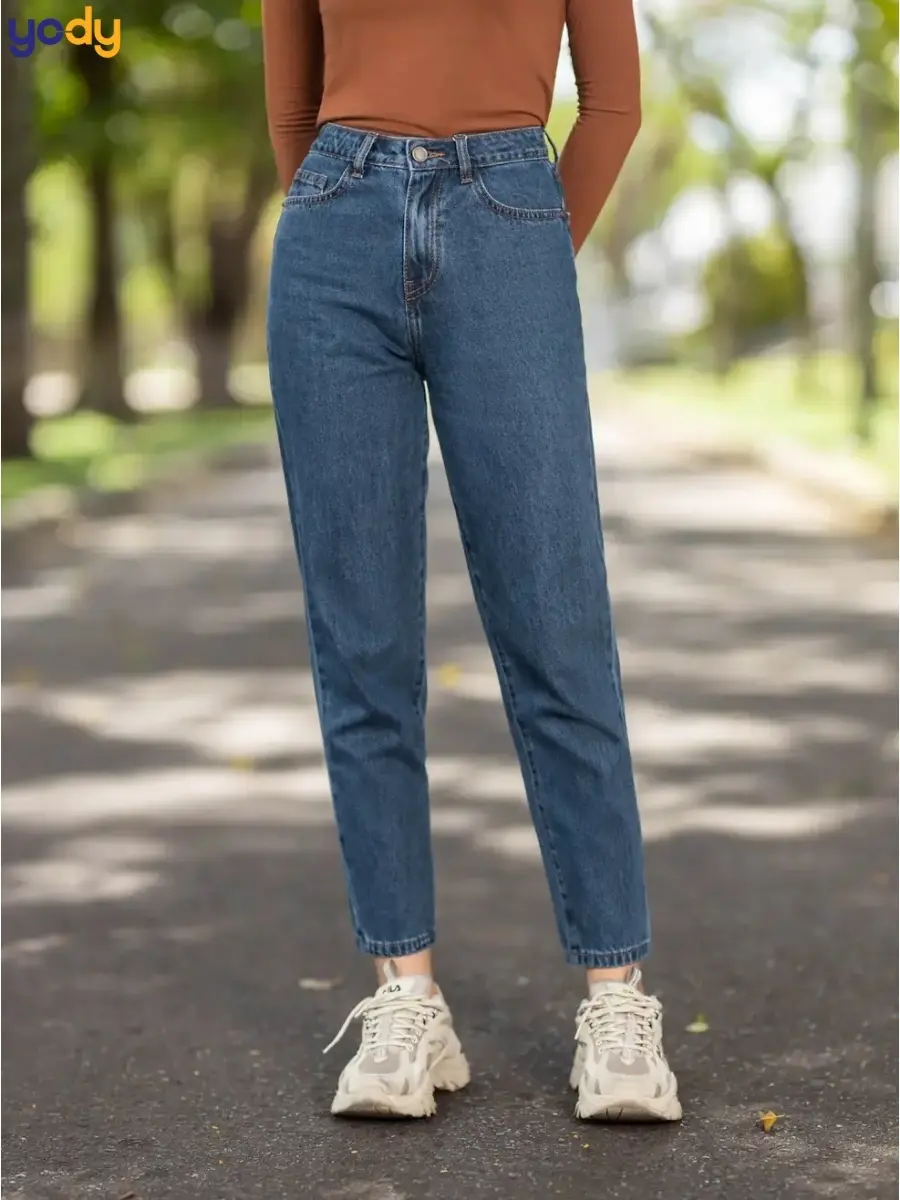 Mẫu quần jeans nữ 100% cotton này tập trung vào phom dáng thoải mái và chất liệu nguyên bản, một số đặc điểm nổi bật như:
