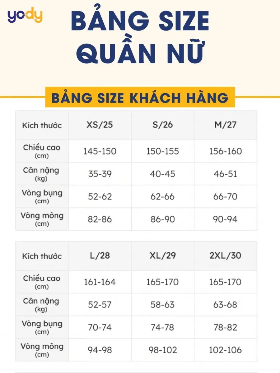 Do quần là 100% Cotton và không co giãn, bạn cần chọn size cẩn thận để đảm bảo sự thoải mái và phom dáng chuẩn. Hãy đo vòng eo chính xác và chọn size sao cho quần vừa vặn ở cạp, vì chất liệu không co giãn, cạp quần cần phải thoải mái khi đứng và ngồi.