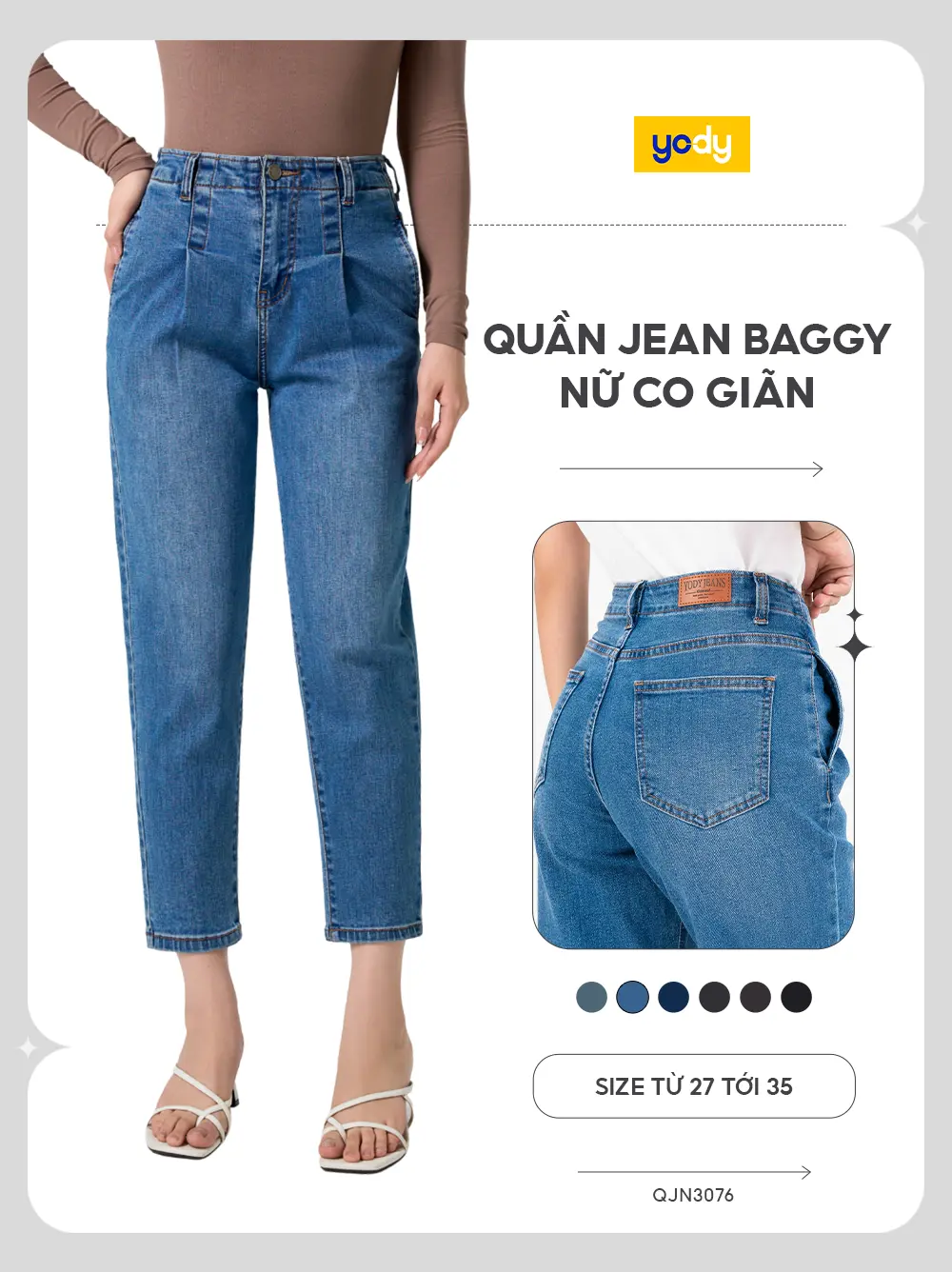 Quần Jeans Baggy Cạp Liền Co Giãn