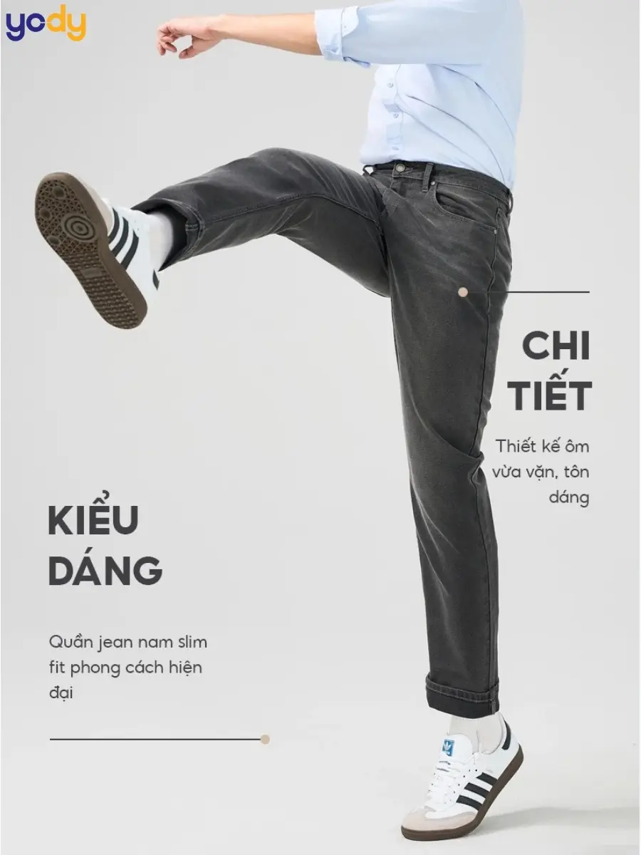 Chiếc quần jeans nam từ YODY này nổi bật với phom suông ôm vừa vặn, tôn dáng người mặc, cùng với chất liệu cao cấp được làm từ bông tự nhiên kết hợp sợi REPREVE® tái chế từ chai nhựa. Đây không chỉ là một item thời trang cá tính mà còn là lựa chọn thân thiện với môi trường. Hãy cùng YODY khám phá những điểm đặc biệt, ưu điểm vượt trội và mẹo phối đồ để bạn luôn tự tin và phong cách.