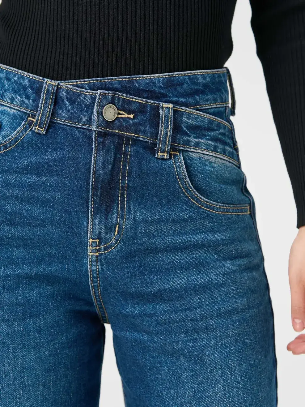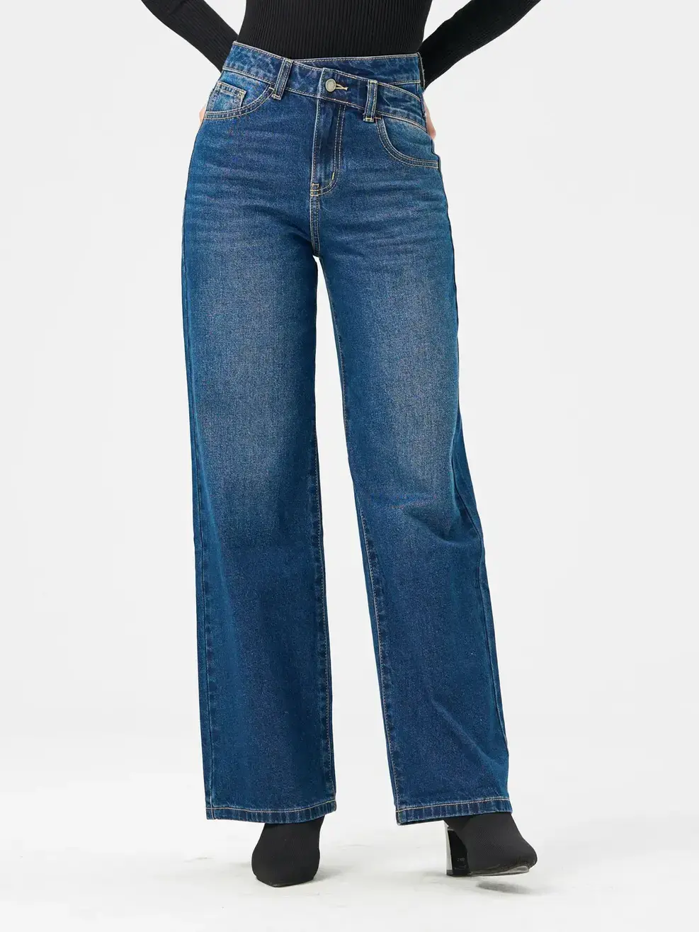 Quần Jeans Nữ Dáng Suông Cạp Chéo