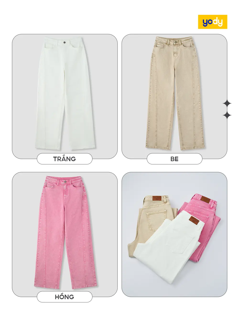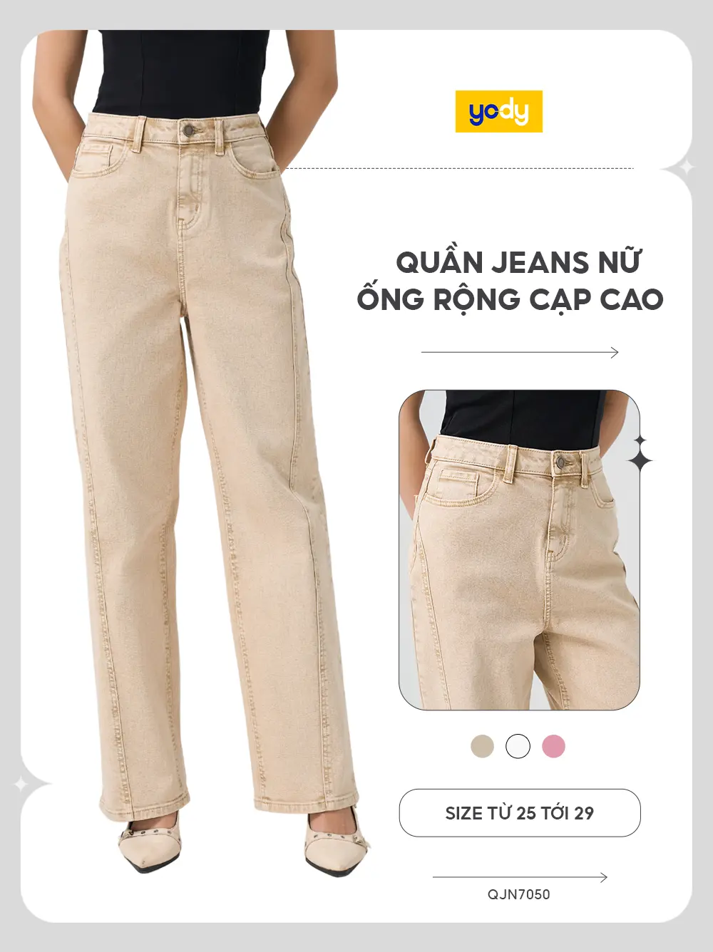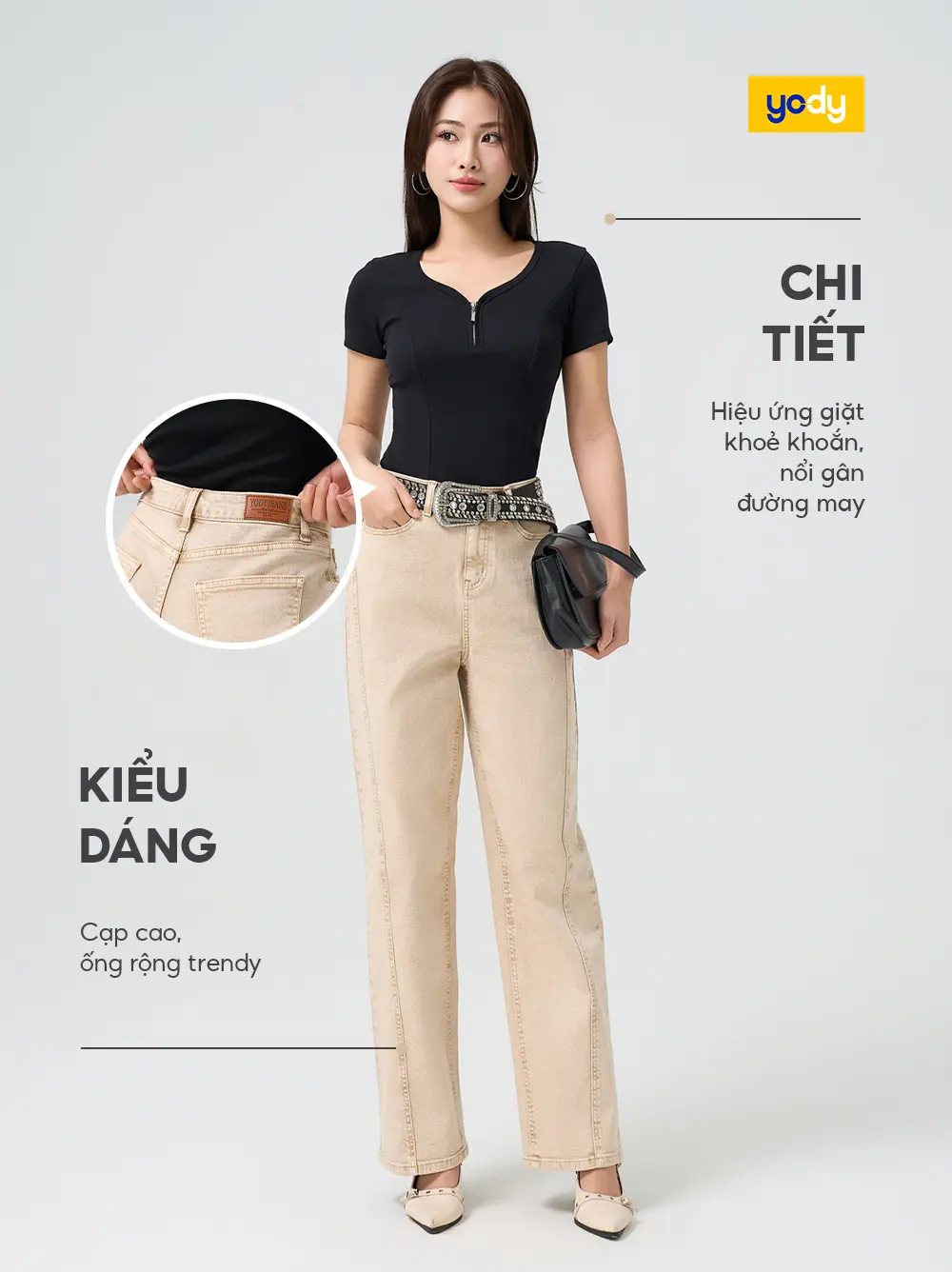 Quần Jeans Nữ Ống Rộng Cạp Cao Can Phối