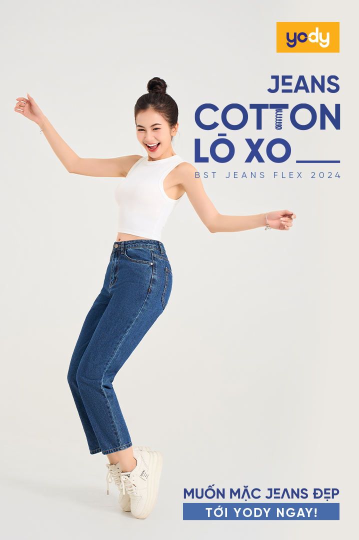 - Cam kết chất lượng vật liệu: YODY sử dụng vải Denim với tỉ lệ Cotton cao, đảm bảo sản phẩm đạt tiêu chuẩn về độ thoáng mát, thấm hút mồ hôi và độ bền.