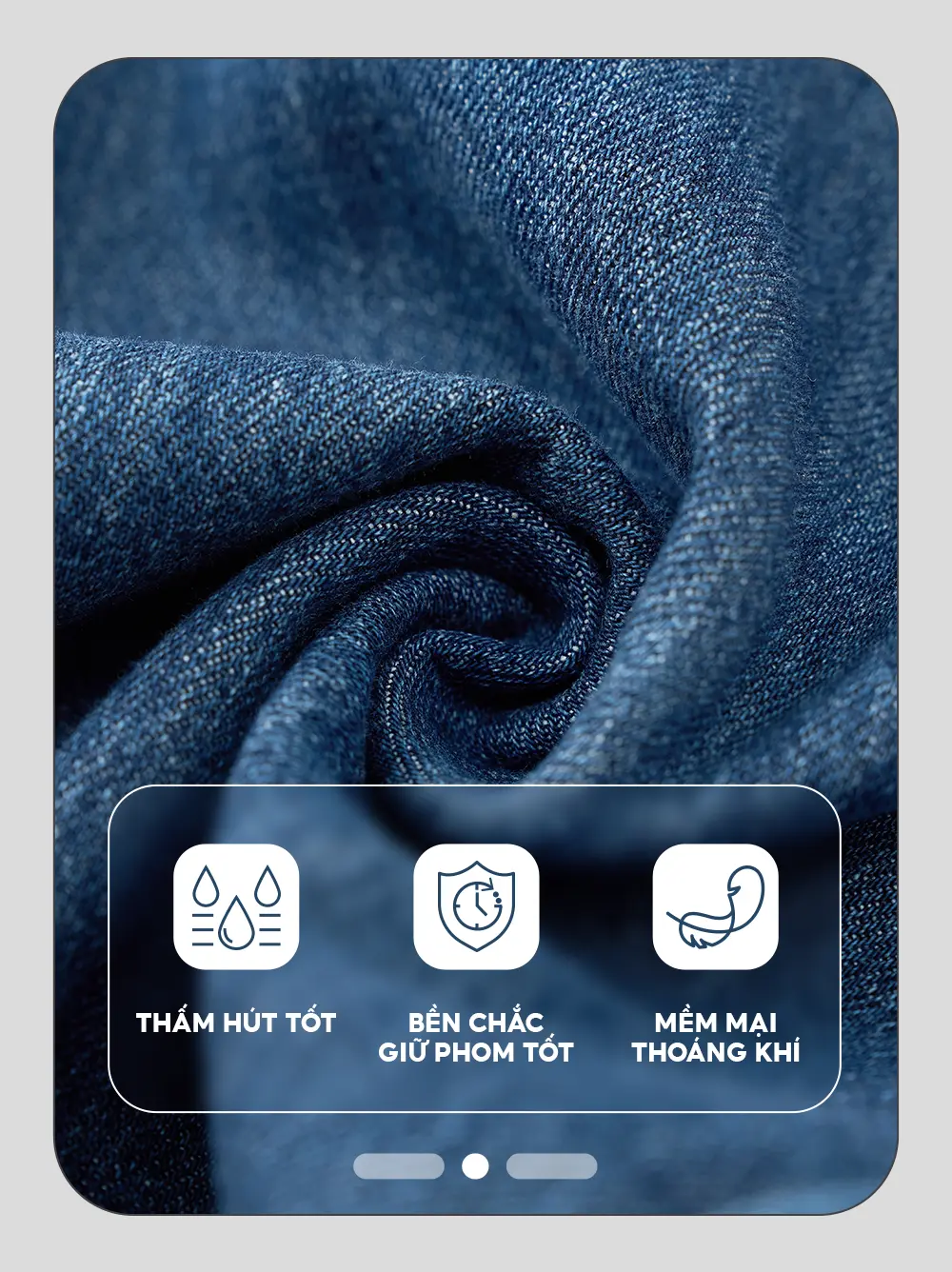 - Chất liệu tối ưu: YODY sử dụng sự pha trộn Jeans Poly Cotton giúp cân bằng giữa độ bền (Polyester) và sự thoải mái (Cotton), mang lại sản phẩm mỏng nhẹ, thoáng khí lý tưởng.