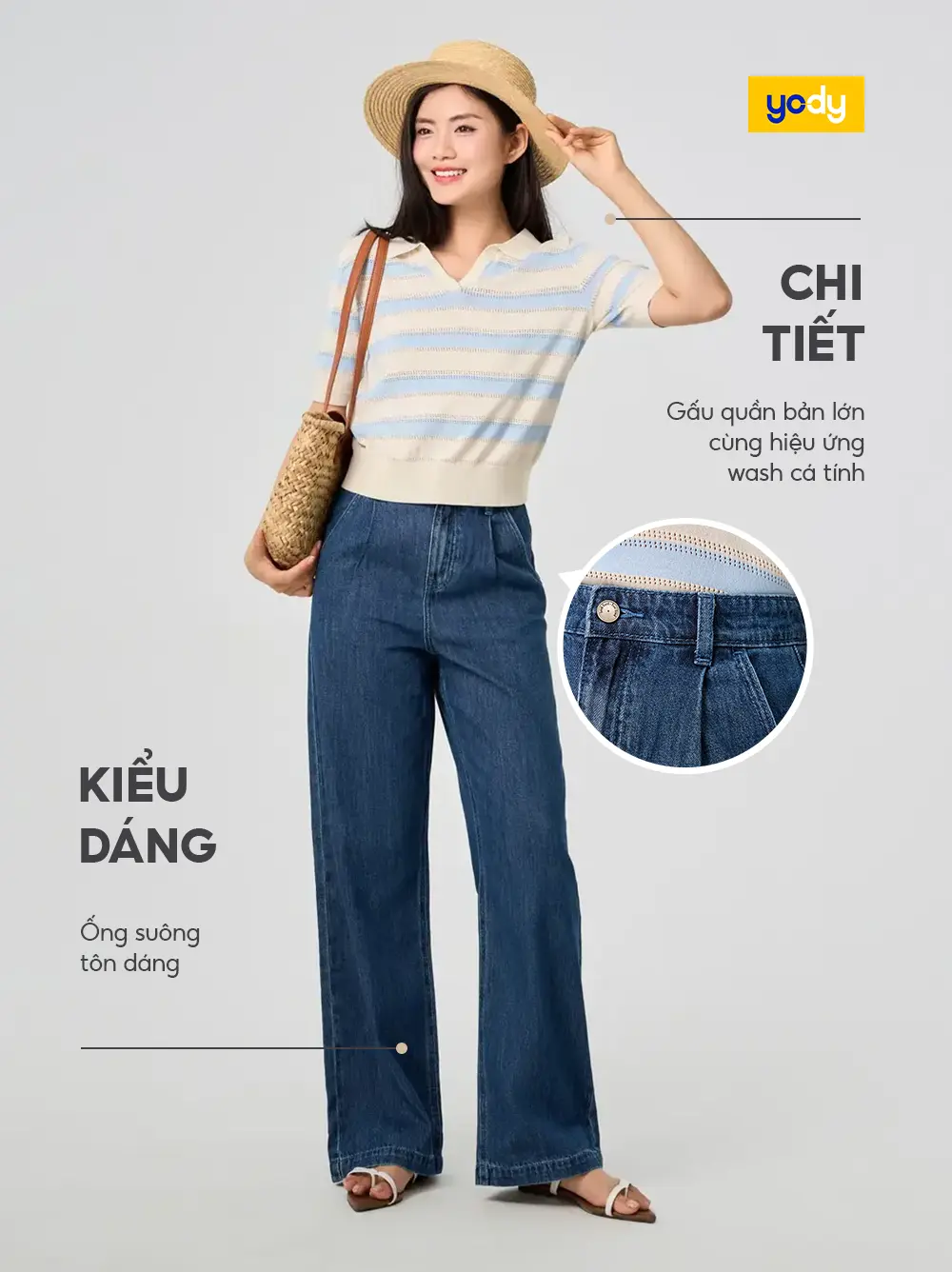 Quần Jeans Ống Suông Nữ Cạp Chun Mỏng Nhẹ là chiếc quần jeans thế hệ mới, đáp ứng hoàn hảo nhu cầu về phong cách, sự thoải mái và tính ứng dụng hàng ngày. Hãy để chiếc quần này mang đến sự tự tin và nhẹ nhàng cho mọi hoạt động của bạn. Đặt mua ngay tại YODY để sở hữu chiếc quần không thể thiếu này!