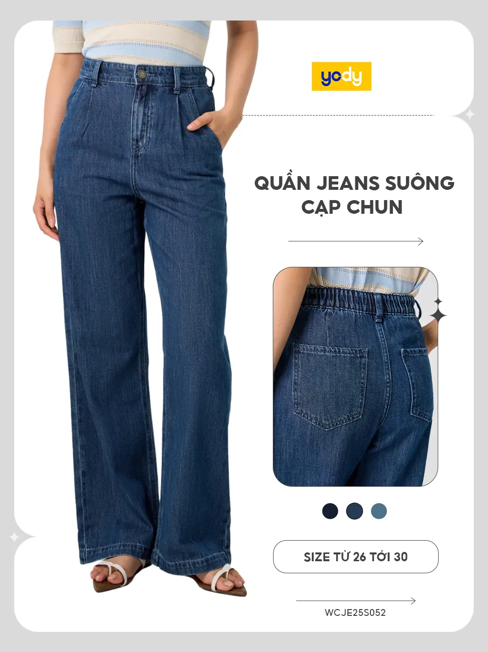 Quần Jeans Ống Suông Nữ Cạp Chun Mỏng Nhẹ chất lượng từ YODY