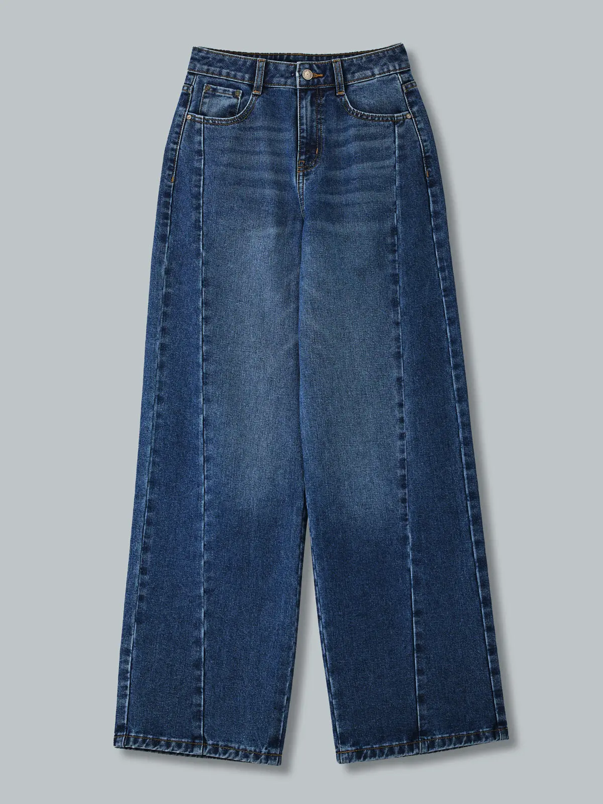 Quần Jeans Nữ Wide Leg Đường Can Chéo ống rộng thoải mái