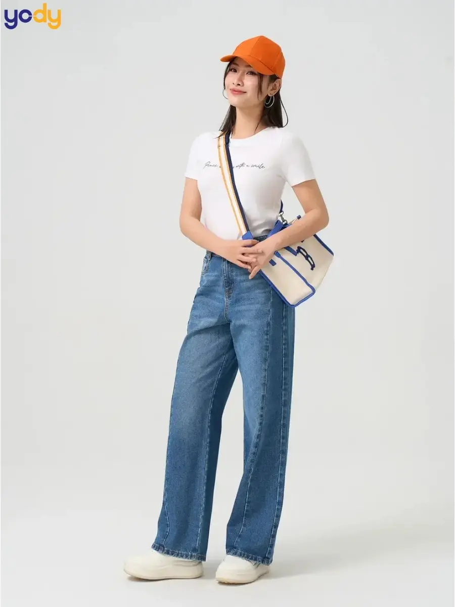 3. Gợi ý cách phối đồ với Quần Jeans Nữ Wide Leg Đường Can Chéo