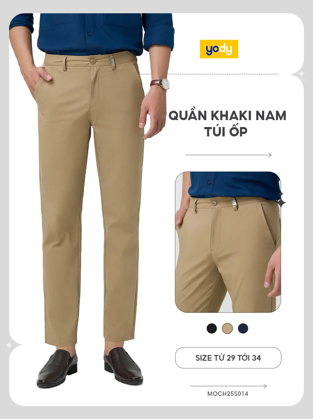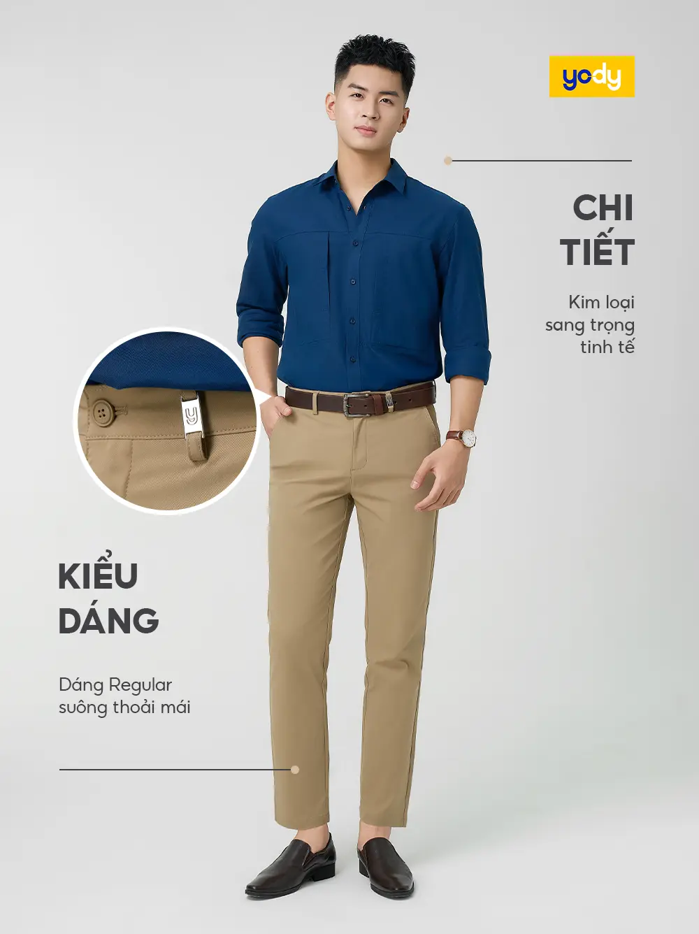 Bền chắc, hạn chế xù lông và nhăn nhàu: Vải khaki dệt với cấu trúc đặc biệt, giúp hạn chế xù lông và giữ phom dáng quần luôn đẹp sau nhiều lần giặt.