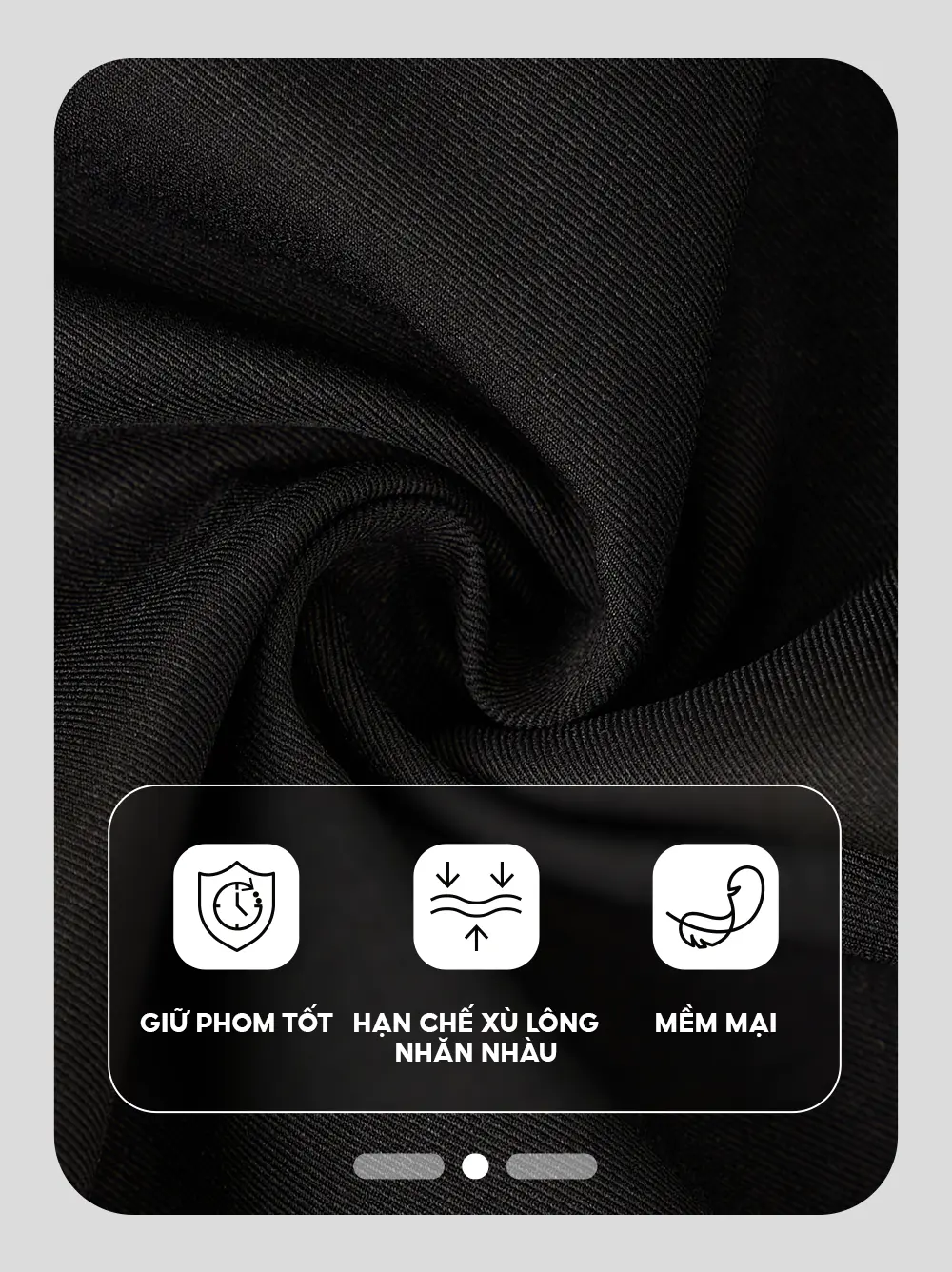 Thấm hút và thoáng khí: Vải Polyester kết hợp với Cotton giúp quần có khả năng thấm hút mồ hôi, mang lại cảm giác thoáng mát, dễ chịu suốt cả ngày.