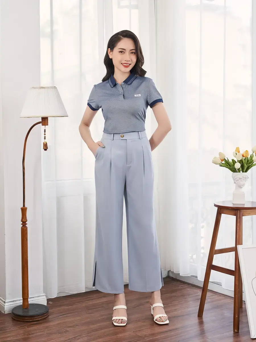 Quần Tây Nữ Ống Rộng Lưng Cao Xẻ Gấu
