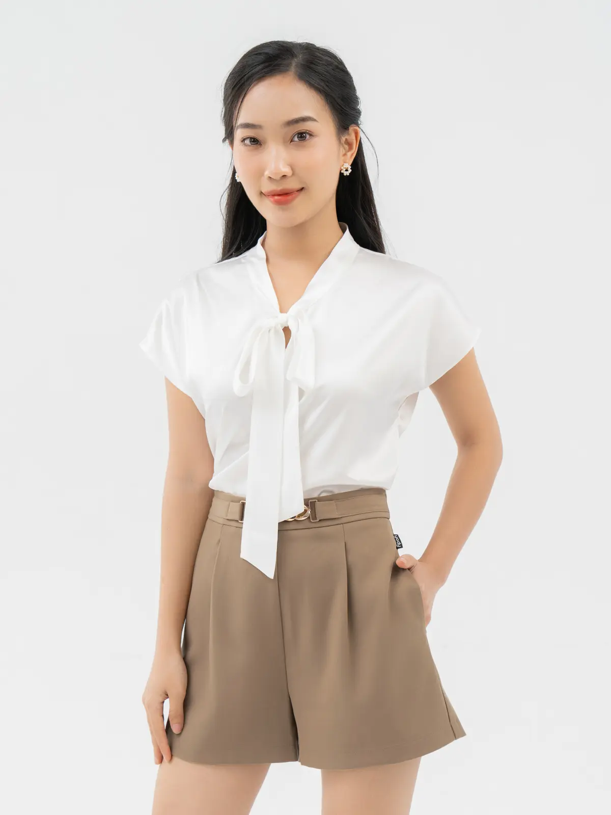 Sơ Mi Cộc Tay Nữ Vai Chờm Nơ Cổ