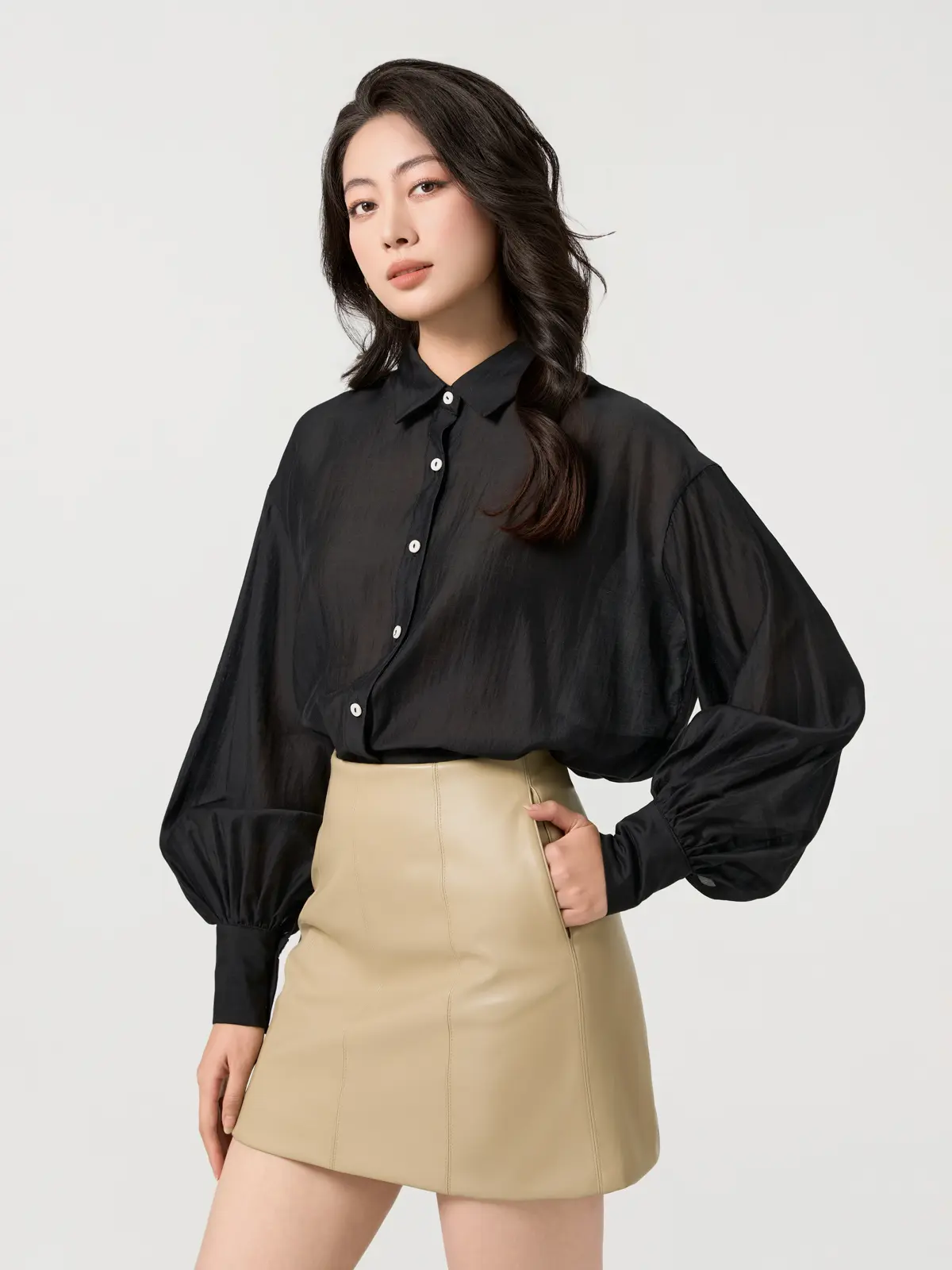 Sơ Mi Dài Tay Nữ Dáng Suông Vải Tơ