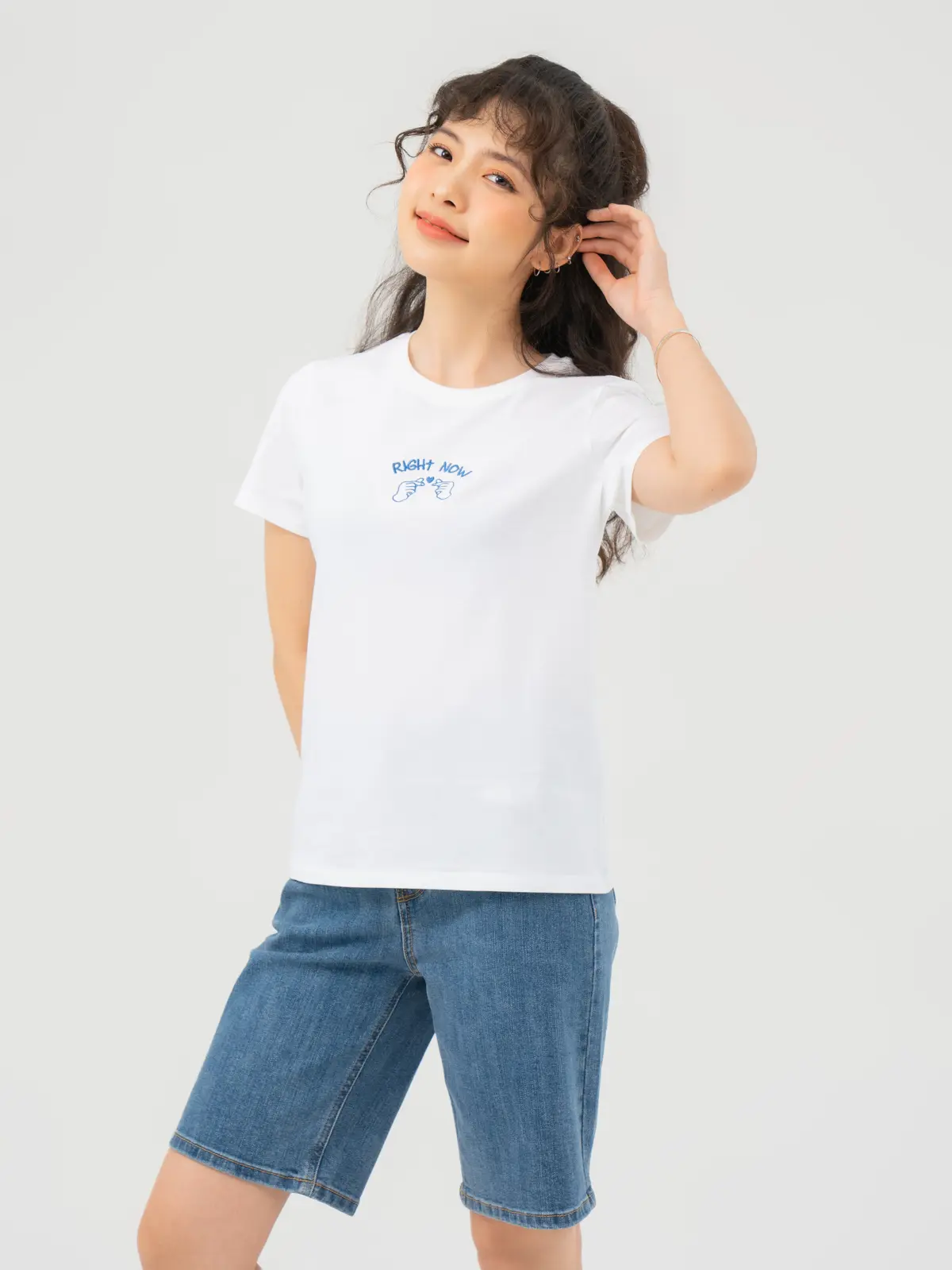 T-shirt Nữ Thêu Chữ Right Now Cotton Usa