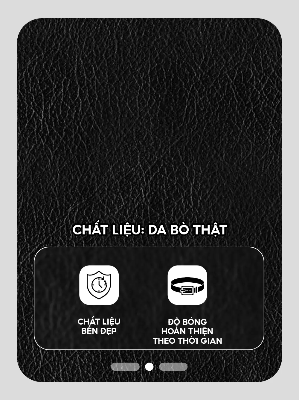 Chất da bò thật đem đến độ bóng hoàn thiện theo thời gian, cùng với đó là độ bền lâu dài trong quá trình sử dụng.