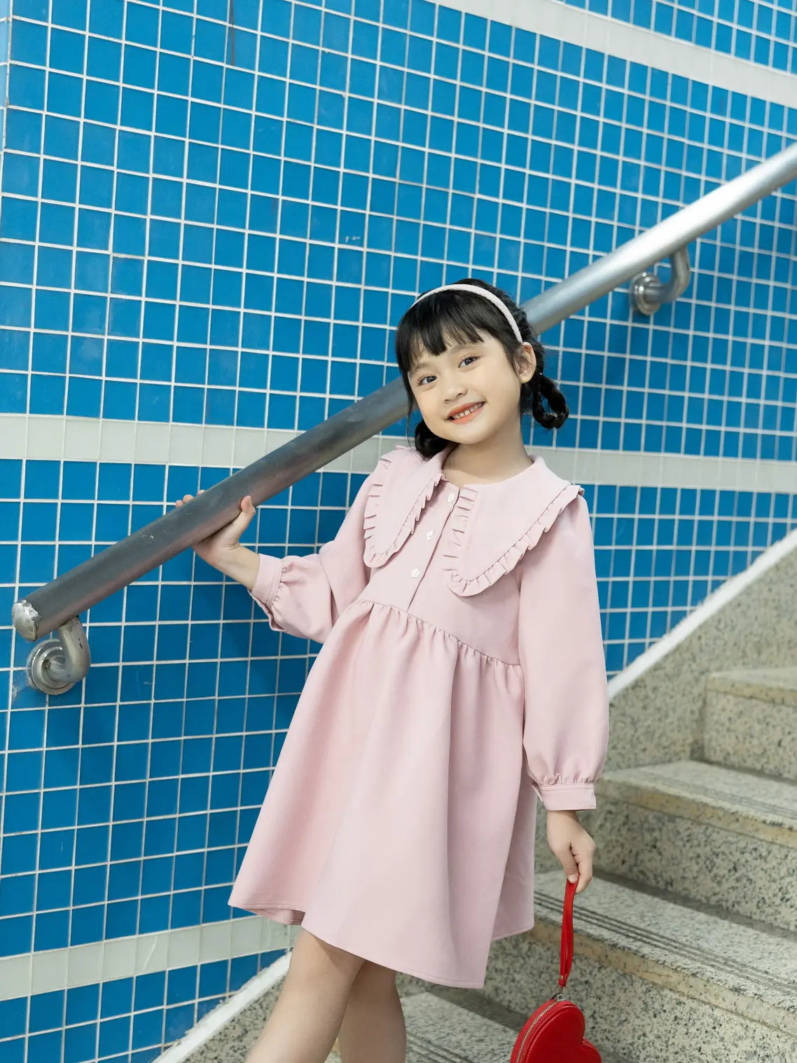 Kiểu dáng xòe bồng rộng rãi thoải mái, thiết kế lá cổ to nhún bèo điệu đà nữ tính. Váy sử dụng vải dạ mềm mại, mịn màng với làn da bé. Sợi vải hạn chế xù lông vón cục, nhăn nhàu, bề mặt chắc chắn, bền đẹp.