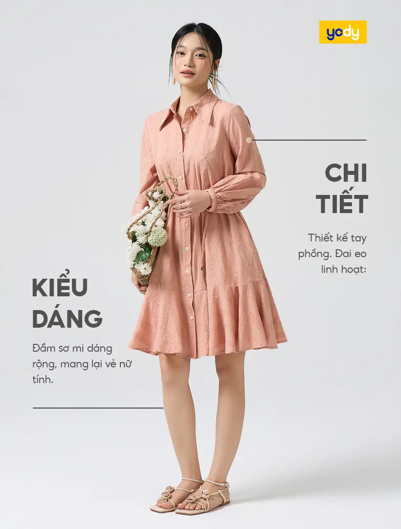 Thoải mái & thanh lịch: Đầm sơ mi dáng rộng, phù hợp cho nhiều phong cách.