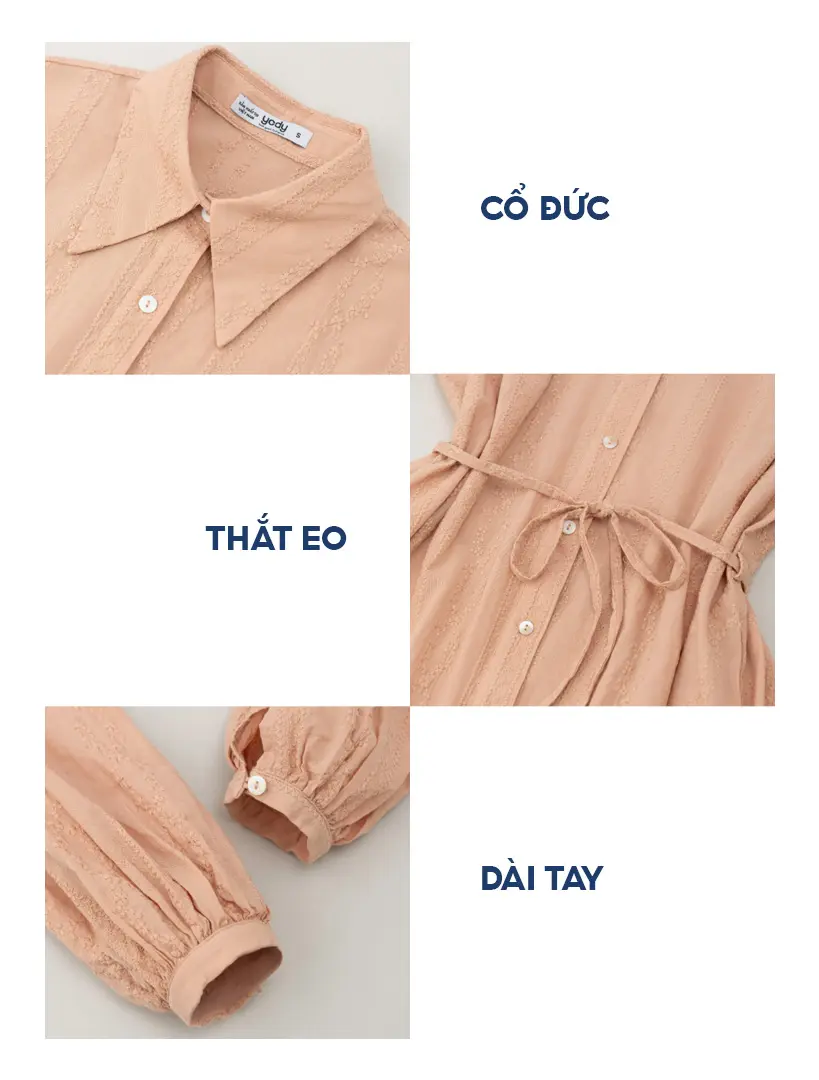 Điểm nhấn tinh tế: Họa tiết thêu tạo nét nữ tính và thanh lịch.