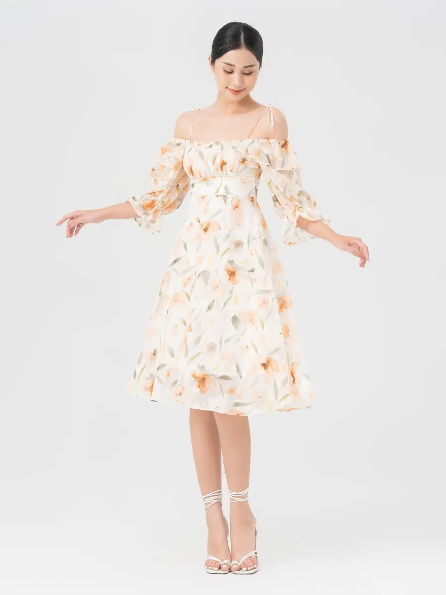Sản phẩm nằm trong bộ sưu tập mới nhất mùa hè này. Kiểu dáng thanh lịch, thiết kế trễ vai khoe trọn vùng xương quai xanh quyến rũ. Váy xoè hoa cùng gam màu nhẹ nhàng tạo nên vẻ đẹp vừa dịu dàng ngọt ngào, vừa gợi cảm nữ tính.